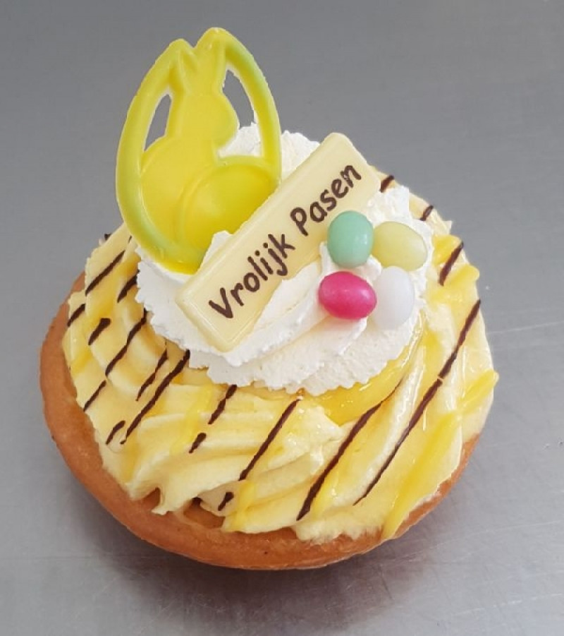 Afgewerkt met slagroom en paasdecoratie